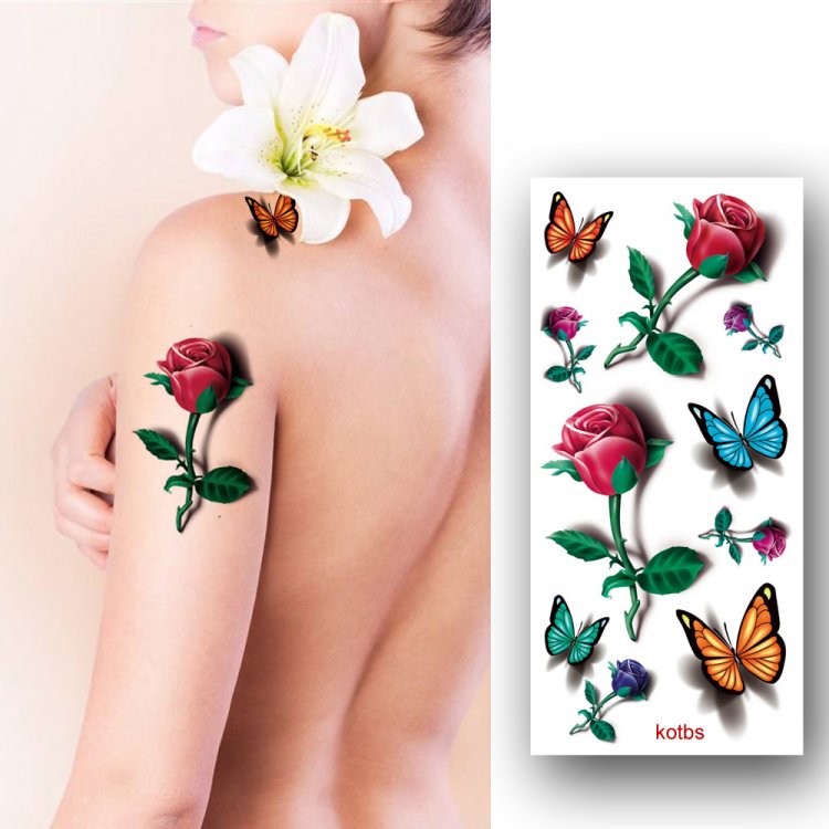 Kotbs 12 Sheets Bright 3d Temporary Tattoos for Women Teens Girls Waterproof Sexy Rose Temporary Floral Tattoo Sticker Body Art Makeup Fake Tattoos Transfer Paper