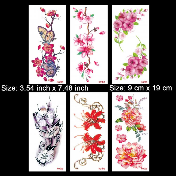Kotbs 6 Sheets Large Temporary Tattoos Flower Paper Sexy Body Tattoo Sticker for Women & Girl Fake Tattoo (Lily, Peach, Plum, Peony)
